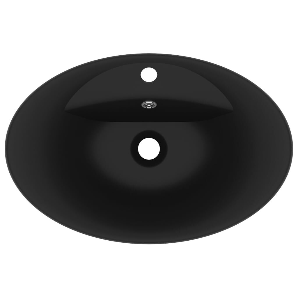 Our oval washbasin, made of premium ceramic, is a stylish addition to any bathroom, washroom, or powder room. Its matt surface and luxury design bring a modern yet elegant look. This artistic ceramic basin is more than just a practical vessel for everyday use. It is an adornment for your living space! This matt basin can be placed on top of the bathroom console and also in the bathroom, cosmetic room, garage, kitchen or workplace. It is designed to suit any interior style. An overflow is equipped to flow water out when it is full. A 3.5 cm faucet hole is included to install a tap. The drain hole is 4.5 cm in diameter. Please note: The tap and the drain pipe are not included in the delivery.