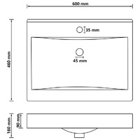 Our rectangular wash basin, made of premium ceramic, is a stylish addition to any bathroom, washroom or powder room. Its matt surface and luxury design bring itself a modern yet elegant design. This artistic ceramic basin is more than just a practical vessel for everyday use. It is an adornment for your living space. This sink can be used in the cosmetic room, garage, kitchen or workplace. It definitely suits any interior style and is quite easy to clean. Additionally, this basin can be used as wall hung basin as well as built-in basin. A faucet hole is equipped to install a tap and an overflow hole is equipped to flow water out when it gets full. The drain hole is 4.5 cm in diameter. Please note: Drain pipe is not included in the delivery. If you want to wall mount this basin, it needs to be supported by wall bolts. Please note: The wall bolts are not included in the delivery.