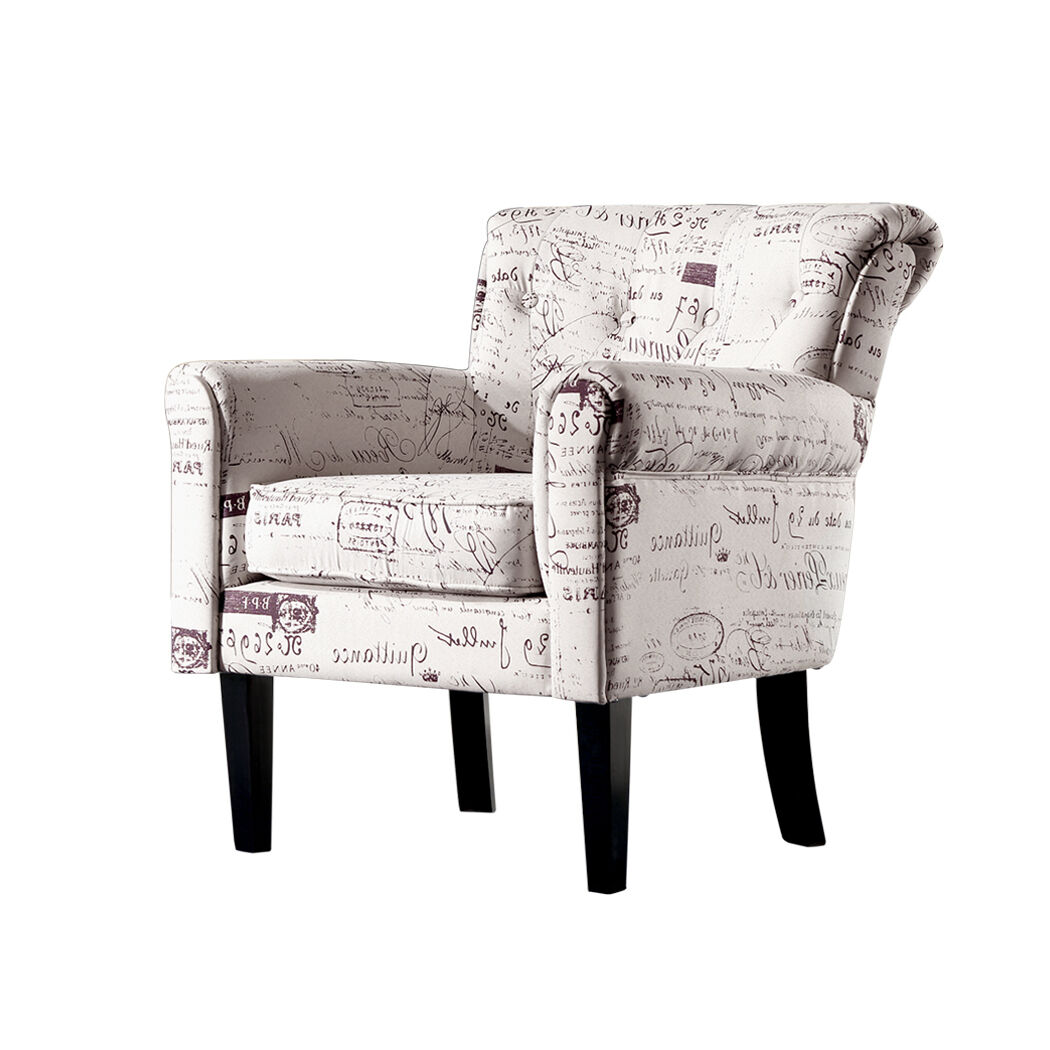 The Upholstered chair is the perfect chair for any room that exhibits an affluent or upscale decor. Aside from the sleek black legs, this chair is upholstered entirely with charming letter in vintage tones. It offers comfortable cushioned seating and the armrests and top portion of the back curve, adding to the exquisite and ed styling of this chair. It is also great as an accent chair to match with your existing furniture in your living room, bedroom, office or den.