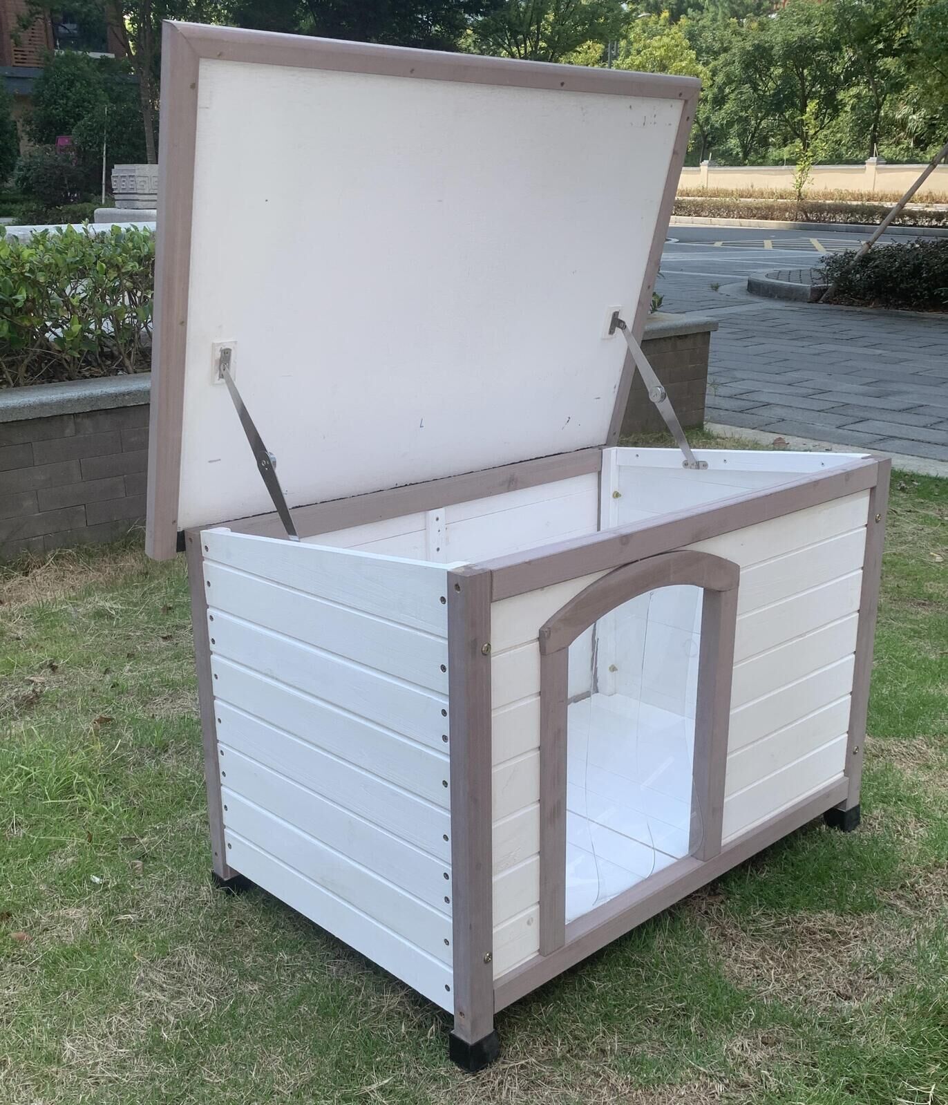 The interior is spacious, the entrance is wide and the entire kennel sits on an elevated floor that keeps ticks and fleas away from your pet. The roof can also be opened to air or clean the kennel if needed. Not least, the adjustable footing allows the kennel to be set on uneven ground without any issues.