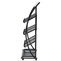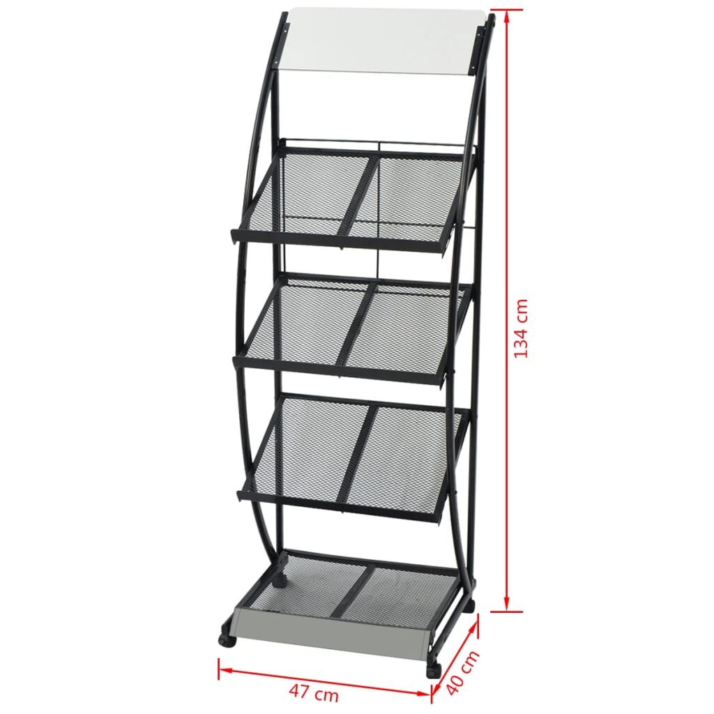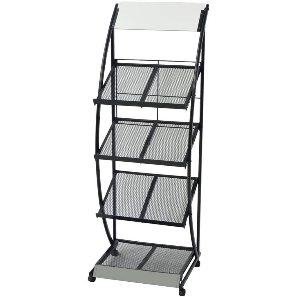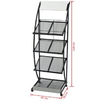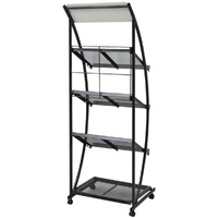 Our magazine rack is an attractively designed display stand for magazines, brochures or books. The four large shelves offer ample space to display A4 brochures, books or magazines side by side. You can print or glue your company’s logo on the top board. It is easy to move thanks to the castor wheels. With its modern design, it suits almost any interior style. You can place the display rack in your office, waiting room, living room or bedroom. It is easy to assemble.