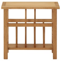 Our magazine table features a simple yet stylish design and adds a touch of rustic charm to your home decor. This magazine rack has been expertly crafted from solid oak wood and MDF, making it durable and functional. Thanks to its compact design, the table takes up very little space and is easy to move around. The sturdy tabletop is ideal for displaying decorative objects, photo frames, or potted plants. It also has one shelf, which is perfect for keeping newspapers and magazines.