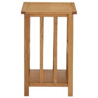 Our magazine table features a simple yet stylish design and adds a touch of rustic charm to your home decor. This magazine rack has been expertly crafted from solid oak wood and MDF, making it durable and functional. Thanks to its compact design, the table takes up very little space and is easy to move around. The sturdy tabletop is ideal for displaying decorative objects, photo frames, or potted plants. It also has one shelf, which is perfect for keeping newspapers and magazines.