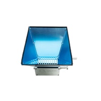 The blue plastic film seen in these photos is how the hoppers are packaged for shipment to reduce scratching ont he metal surfaces. It is to be removed before use.
