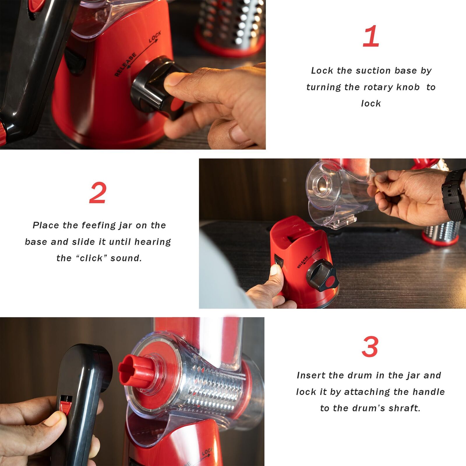 Simplify meal prep and elevate your cooking with this manual rotary food slicer and grater, a versatile kitchen essential that delivers professional results at home. Designed for efficiency and ease, this hand-cranked tool effortlessly slices, shreds, and grates a wide range of ingredientsincluding cheese, potatoes, carrots, cucumbers, zucchini, and nutsusing three precision-engineered stainless steel drums. Just load your ingredient into the feeding chamber, secure the lid, and turn the smooth-grip handle to produce uniform cuts in seconds. The sturdy suction base locks firmly onto any clean, flat countertop, eliminating slips and ensuring safe, stable operation. Crafted from BPA-free, food-grade materials, the body is durable and odor-resistant, while the 430 stainless steel blades stay sharp, rust-free, and easy to clean. A transparent collection tray lets you monitor output, and the included cleaning brush and peeler make post-cooking cleanup fast and simple. Perfect for making salads, gratins, stir-fries, or garnishes, this compact yet powerful tool is ideal for everyday use, entertaining, or meal preppingbringing speed, consistency, and fun to your kitchen routine.
