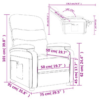 Sit back and drift away in this highly comfortable massage chair! Manual reclining function: The reclining chair is specially designed with 3 reclining positions so that you can adjust the backrest and footrest manually as per your comfort.Vibration function: The featured 6 massage points let you experience a better-targeted massage. Additionally, the included hand control allows you to pick different massage programs. The massage function is powered by the USB connector that requires a certified 5V USB power source (not included).Comfortable seat experience: The thickly padded seat, backrest, and wide armrests covered in faux leather provide a cosy and warm sensation, making you feel embraced while seated. The faux leather is a highly durable material. It is resistant to stain, making it easy to clean with a damp cloth. The smooth surface also gives a luxurious look and the beauty of real leather.Solid and stable frame: The frame made of wood and metal provides a strong structure and stability. This reclining armchair is comfortable and durable.