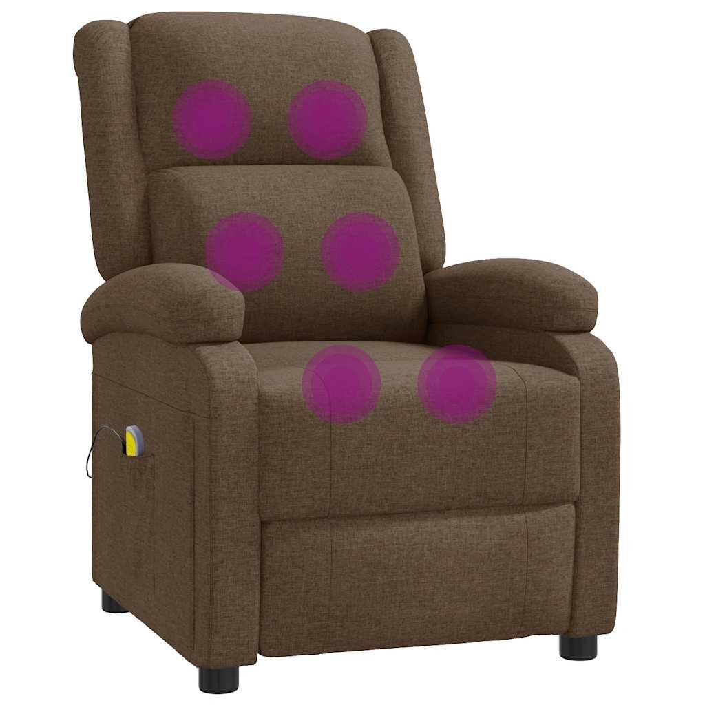 Sit back and drift away in this highly comfortable massage chair! Manual reclining function: The reclining chair is specially designed with 3 reclining positions so that you can adjust the backrest and footrest manually as per your comfort.Vibration function: The featured 6 massage points let you experience a better-targeted massage. Additionally, the included hand control allows you to pick different massage programs. The massage function is powered by the USB connector that requires a certified 5V USB power source (not included).Comfortable seat experience: The thickly padded seat, backrest, and wide armrests covered in fabric provide a cosy and warm sensation, making you feel embraced while seated. The fabric features a simple and clean look, and is breathable and durable.Solid and stable frame: The frame made of wood and metal provides a strong structure and stability. This reclining armchair is comfortable and durable.