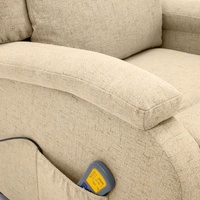 Sit back and drift away in this highly comfortable massage chair! Manual reclining function: The reclining chair is specially designed with 3 reclining positions so that you can adjust the backrest and footrest manually as per your comfort.Vibration function: The featured 6 massage points let you experience a better-targeted massage. Additionally, the included hand control allows you to pick different massage programs. The massage function is powered by the USB connector, but the certified 5V USB power source is not included.Comfortable seat experience: The thickly padded seat, backrest, and wide armrests covered in fabric provide a cosy and warm sensation, making you feel embraced while seated. The fabric features a simple and clean look, and is breathable and durable.Solid and stable frame: The frame made of wood and metal provides a strong structure and stability. This reclining armchair is comfortable and durable.