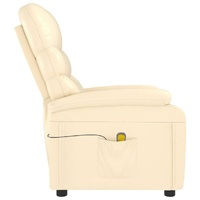 Sit back and drift away in this highly comfortable massage chair! Manual reclining function: The reclining chair is specially designed with 3 reclining positions so that you can adjust the backrest and footrest manually as per your comfort.Vibration function: The featured 6 massage points let you experience a better-targeted massage. Additionally, the included hand control allows you to pick different massage programs. The massage function is powered by the USB connector that requires a certified 5V USB power source (not included).Comfortable seat experience: The thickly padded seat, backrest, and wide armrests covered in faux leather provide a cosy and warm sensation, making you feel embraced while seated. The faux leather is a highly durable material. It is resistant to stain, making it easy to clean with a damp cloth. The smooth surface also gives a luxurious look and the beauty of real leather.Solid and stable frame: The frame made of wood and metal provides a strong structure and stability. This reclining armchair is comfortable and durable.