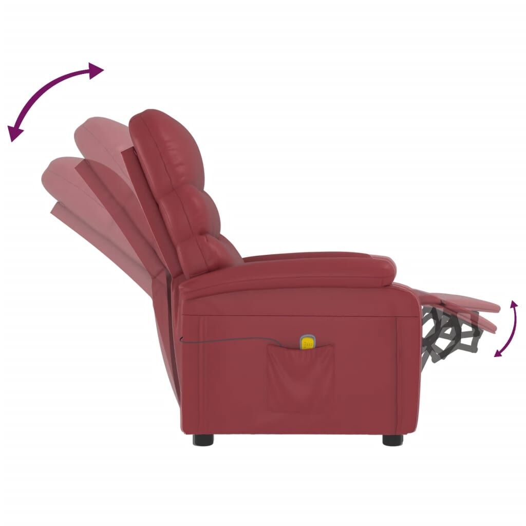 Sit back and drift away in this highly comfortable massage chair! Manual reclining function: The reclining chair is specially designed with 3 reclining positions so that you can adjust the backrest and footrest manually as per your comfort.Vibration function: The featured 6 massage points let you experience a better-targeted massage. Additionally, the included hand control allows you to pick different massage programs. The massage function is powered by the USB connector that requires a certified 5V USB power source (not included).Comfortable seat experience: The thickly padded seat, backrest, and wide armrests covered in faux leather provide a cosy and warm sensation, making you feel embraced while seated. The faux leather is a highly durable material. It is resistant to stain, making it easy to clean with a damp cloth. The smooth surface also gives a luxurious look and the beauty of real leather.Solid and stable frame: The frame made of wood and metal provides a strong structure and stability. This reclining armchair is comfortable and durable.
