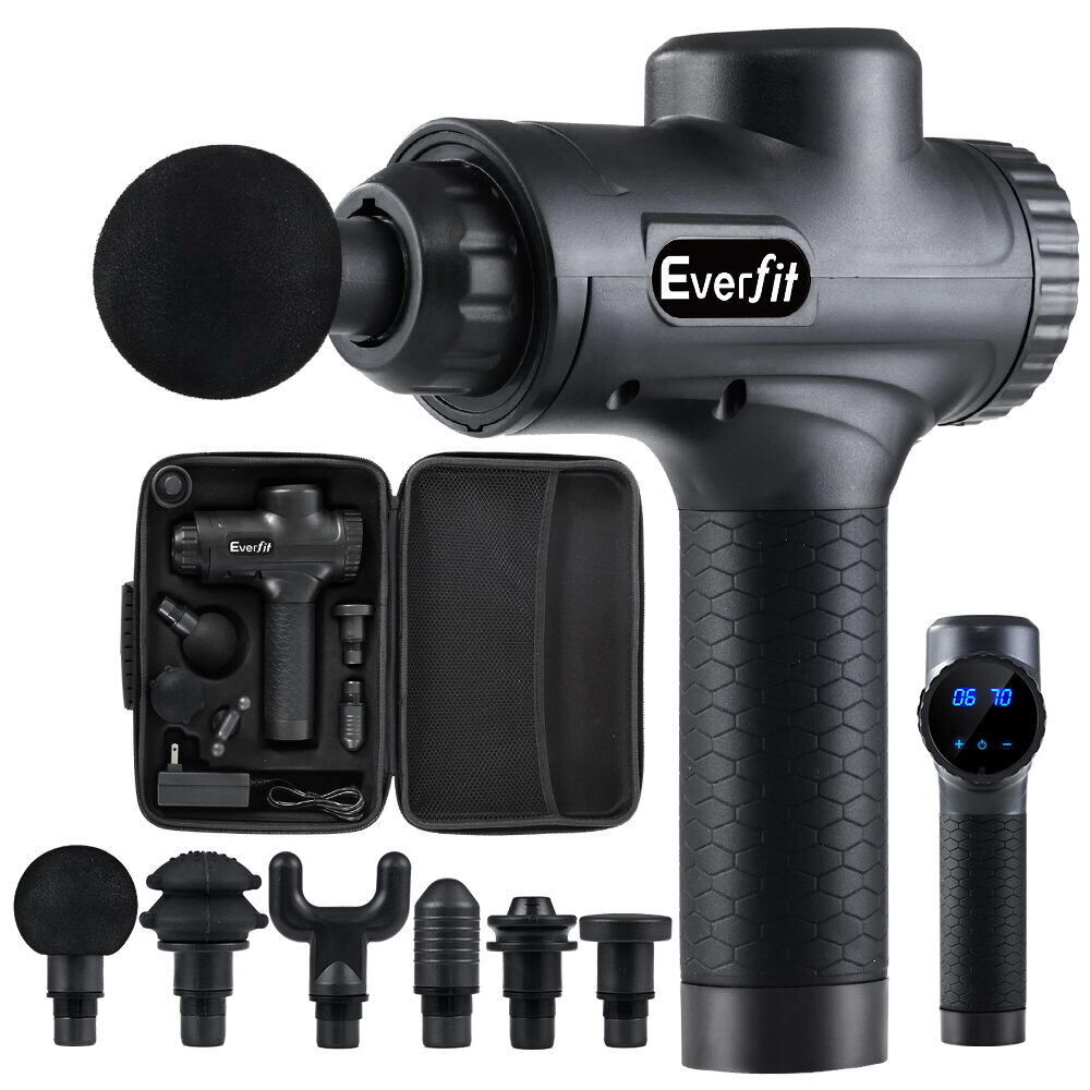 $69.55Chronic muscle pains? Hardcore gym junkie? Office job with long working hours? Recovering from an accident? Whatever your situation, our Everfit Percussion Massage Gun provides customised percussive relief in the comfort of your own home, without the need to visit luxury spas. The powerful 20V brushless high-torque motor with closed-loop control operates quietly and provides rapid bursts of pressure penetrating 12mm deep into your muscle tissues at up to 4000 percussions per minute. The massage gun is powered by a rechargeable lithium battery that lasts up to 8 hours so that you can forget to recharge once in a while and the non-slip rubber handle provides a comfortable grip to reduce hand fatigue. Percussion speed can be easily adjusted using the intuitive LCD display with smart touch controls and there are 30 speed levels to suit various purposes from simply waking up your muscles to relieving lactic acid and assisting muscle recovery after exercising, or even intense professional-level massages. And with the six interchangeable head attachments for targeted relief (round, fork, bullet, flat, Pneumatic and conical heads), you are ensured of a fully customised massage.