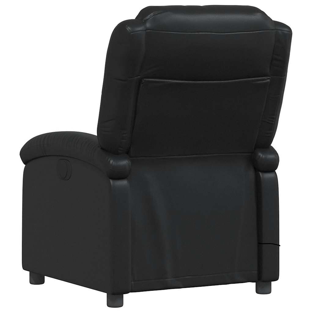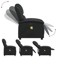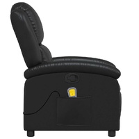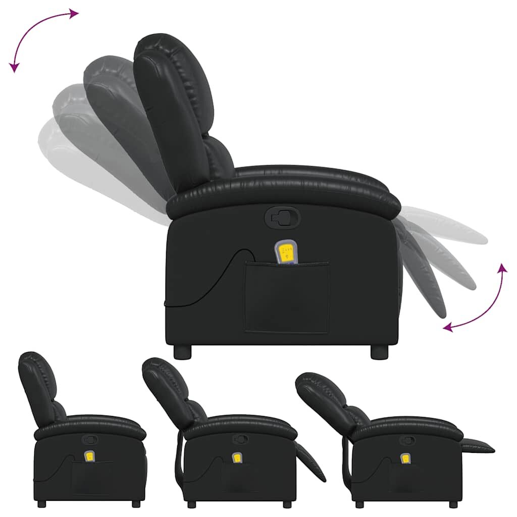 Sit back and drift away in this highly comfortable massage recliner chair! Manual reclining function: This reclining chair has a handle on the right side. You can manually adjust the footrest and the backrest to any position as per your comfort with a simple pull of the handle. This feature allows for a maximum tilt of 135 degrees. Additionally, the backrest can go quickly back to the original place with an easy pull of the handle.Vibration function: The featured 6 massage points let you experience a better-targeted massage. Additionally, the included hand control allows you to pick different massage programs. The massage function is powered by the USB connector, but the certified 5V USB power source is not included.Comfortable seat experience: The thickly padded seat, backrest, and wide armrests covered in faux leather provide a cosy sensation, making you feel embraced while seated. The faux leather is a highly durable material. It is resistant to stain, making it easy to clean with a damp cloth. The smooth surface also gives a luxurious look and the beauty of real leather.Convenient side pocket: This armchair has a side pocket for your remote control or keeping your essential items within easy reach.Solid and stable frame: The frame made of wood and metal provides a strong structure and stability. This reclining armchair is comfortable and durable.