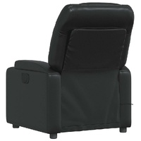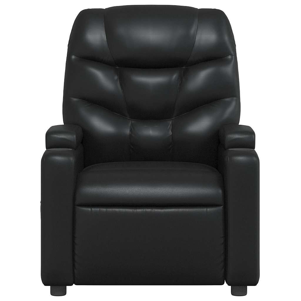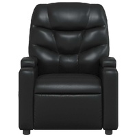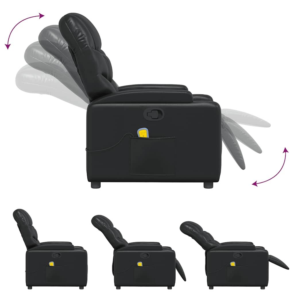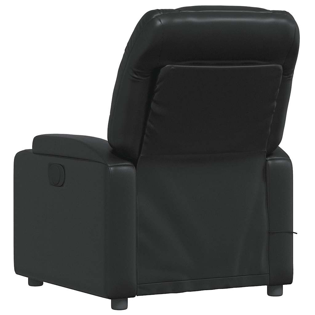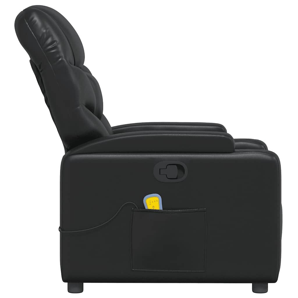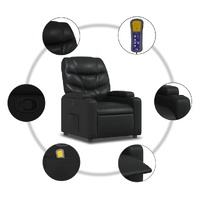Sit back and drift away in this highly comfortable massage recliner chair! Manual reclining function: This reclining chair has a handle on the right side. You can manually adjust the footrest and the backrest to any position as per your comfort with a simple pull of the handle. This feature allows for a maximum tilt of 135 degrees. Additionally, the backrest can go quickly back to the original place with an easy pull of the handle.Vibration function: The featured 6 massage points let you experience a better-targeted massage. Additionally, the included hand control allows you to pick different massage programs. The massage function is powered by the USB connector, but the certified 5V USB power source is not included.Comfortable seat experience: The thickly padded seat, backrest, and wide armrests covered in faux leather provide a cosy sensation, making you feel embraced while seated. The faux leather is a highly durable material. It is resistant to stain, making it easy to clean with a damp cloth. The smooth surface also gives a luxurious look and the beauty of real leather.Convenient cup holders and side pocket: This armchair has two convenient cup holders for your drinks and a side pocket for your remote control or keeping your essential items within easy reach.Solid and stable frame: The frame made of wood and metal provides a strong structure and stability. This reclining armchair is comfortable and durable.