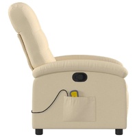 Sit back and drift away in this highly comfortable massage recliner chair! Manual reclining function: This reclining chair has a handle on the right side. You can manually adjust the footrest and the backrest to any position as per your comfort with a simple pull of the handle. This feature allows for a maximum tilt of 135 degrees. Additionally, the backrest can go quickly back to the original place with an easy pull of the handle.Vibration function: The featured 6 massage points let you experience a better-targeted massage. Additionally, the included hand control allows you to pick different massage programs. The massage function is powered by the USB connector, but the certified 5V USB power source is not included.Comfortable seat experience: The thickly padded seat, backrest, and wide armrests covered in fabric provide a cosy and warm sensation, making you feel embraced while seated. The fabric features a simple and clean look and is breathable and durable.Convenient side pocket: This armchair has a side pocket for your remote control or keeping your essential items within easy reach.Solid and stable frame: The frame made of wood and metal provides a strong structure and stability. This reclining armchair is comfortable and durable.