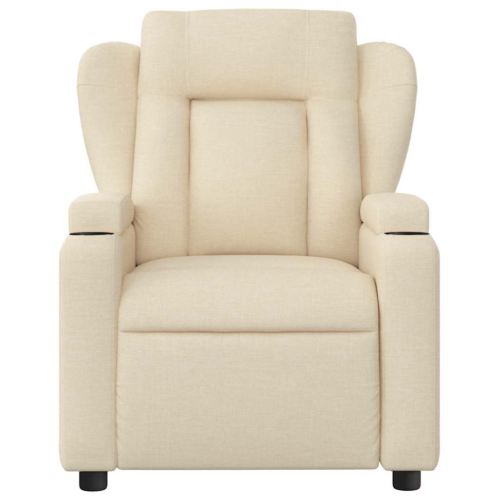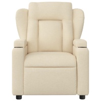 Sit back and drift away in this highly comfortable massage recliner chair! Manual reclining function: This reclining chair has a button on the right side. You can manually adjust the footrest and the backrest to any position as per your comfort with a simple pull of the handle. This feature allows for a maximum tilt of 135 degrees. Additionally, the backrest can go quickly back to the original place with an easy pull of the handle.Vibration function: The featured 6 massage points let you experience a better-targeted massage. Additionally, the included hand control allows you to pick different massage programs. The massage function is powered by the USB connector, but the certified 5V USB power source is not included.Comfortable seat experience: The thickly padded seat, backrest, and wide armrests covered in fabric provide a cosy and warm sensation, making you feel embraced while seated. The fabric features a simple and clean look and is breathable and durable.Convenient cup holders and side pocket: This armchair has two convenient cup holders for your drinks and a side pocket for your remote control or keeping your essential items within easy reach.Solid and stable frame: The frame made of wood and metal provides a strong structure and stability. This reclining armchair is comfortable and durable.