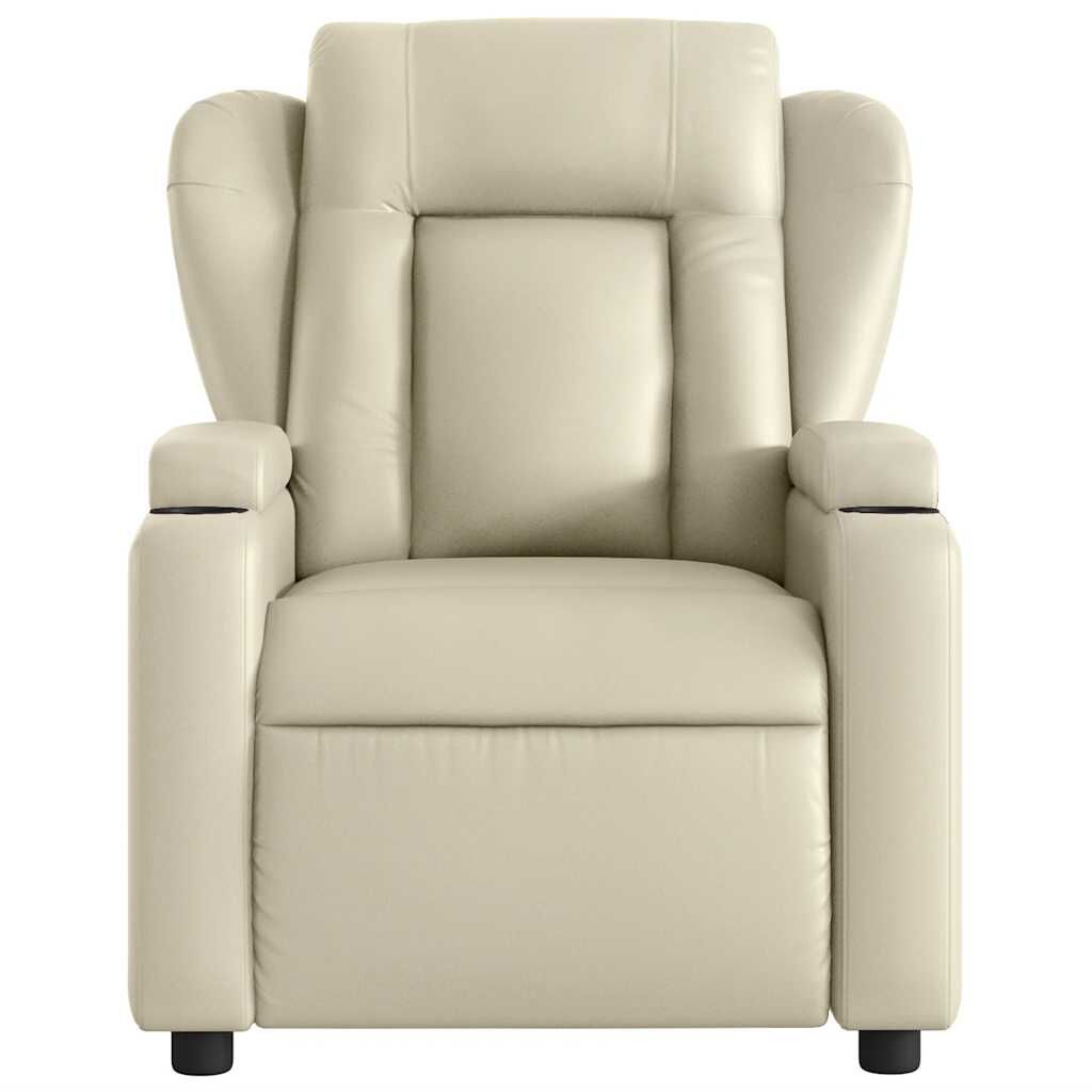 Sit back and drift away in this highly comfortable massage recliner chair! Manual reclining function: This reclining chair has a button on the right side. You can manually adjust the footrest and the backrest to any position as per your comfort with a simple press of the button. This feature allows for a maximum tilt of 135 degrees. Additionally, the backrest can go quickly back to the original place with an easy pull of the button.Vibration function: The featured 6 massage points let you experience a better-targeted massage. Additionally, the included hand control allows you to pick different massage programs. The massage function is powered by the USB connector, but the certified 5V USB power source is not included.Comfortable seat experience: The thickly padded seat, backrest, and wide armrests covered in faux leather provide a cosy sensation, making you feel embraced while seated. The faux leather is a highly durable material. It is resistant to stain, making it easy to clean with a damp cloth. The smooth surface also gives a luxurious look and the beauty of real leather.Convenient cup holders and side pocket: This armchair has two convenient cup holders for your drinks and a side pocket for your remote control or keeping your essential items within easy reach.Solid and stable frame: The frame made of wood and metal provides a strong structure and stability. This reclining armchair is comfortable and durable.