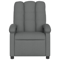 Sit back and drift away in this highly comfortable massage recliner chair! Manual reclining function: This reclining chair has a handle on the right side. You can manually adjust the footrest and the backrest to any position as per your comfort with a simple pull of the handle. This feature allows for a maximum tilt of 135 degrees. Additionally, the backrest can go quickly back to the original place with an easy pull of the handle.Vibration function: The featured 6 massage points let you experience a better-targeted massage. Additionally, the included hand control allows you to pick different massage programs. The massage function is powered by the USB connector, but the certified 5V USB power source is not included.Comfortable seat experience: The thickly padded seat, backrest, and wide armrests covered in fabric provide a cosy and warm sensation, making you feel embraced while seated. The fabric features a simple and clean look and is breathable and durable.Convenient side pocket: This armchair has a side pocket for your remote control or keeping your essential items within easy reach.Solid and stable frame: The frame made of wood and metal provides a strong structure and stability. This reclining armchair is comfortable and durable.