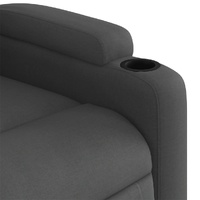 Sit back and drift away in this highly comfortable massage recliner chair! Manual reclining function: This reclining chair has a handle on the right side. You can manually adjust the footrest and the backrest to any position as per your comfort with a simple pull of the handle. This feature allows for a maximum tilt of 135 degrees. Additionally, the backrest can go quickly back to the original place with an easy pull of the handle.Vibration function: The featured 6 massage points let you experience a better-targeted massage. Additionally, the included hand control allows you to pick different massage programs. The massage function is powered by the USB connector, but the certified 5V USB power source is not included.Comfortable seat experience: The thickly padded seat, backrest, and wide armrests covered in fabric provide a cosy and warm sensation, making you feel embraced while seated. The fabric features a simple and clean look and is breathable and durable.Convenient cup holders and side pocket: This armchair has two convenient cup holders for your drinks and a side pocket for your remote control or keeping your essential items within easy reach.Solid and stable frame: The frame made of wood and metal provides a strong structure and stability. This reclining armchair is comfortable and durable.