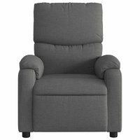 Sit back and drift away in this highly comfortable massage recliner chair! Manual reclining function: This reclining chair has a handle on the right side. You can manually adjust the footrest and the backrest to any position as per your comfort with a simple pull of the handle. This feature allows for a maximum tilt of 135 degrees. Additionally, the backrest can go quickly back to the original place with an easy pull of the handle.Vibration function: The featured 6 massage points let you experience a better-targeted massage. Additionally, the included hand control allows you to pick different massage programs. The massage function is powered by the USB connector, but the certified 5V USB power source is not included.Comfortable seat experience: The thickly padded seat, backrest, and wide armrests covered in fabric provide a cosy and warm sensation, making you feel embraced while seated. The fabric features a simple and clean look and is breathable and durable.Convenient side pocket: This armchair has a side pocket for your remote control or keeping your essential items within easy reach.Solid and stable frame: The frame made of wood and metal provides a strong structure and stability. This reclining armchair is comfortable and durable.