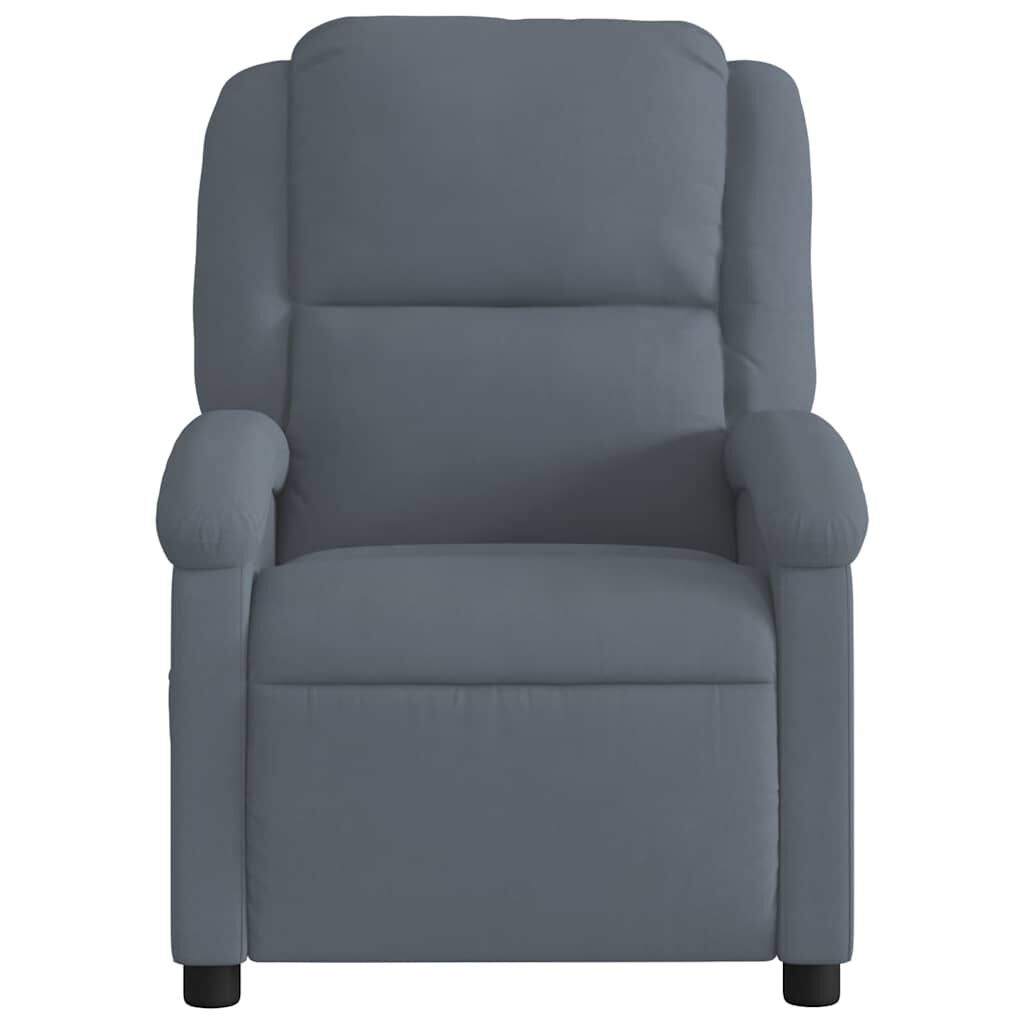 Sit back and drift away in this highly comfortable massage recliner chair! Manual reclining function: This reclining chair has a button on the right side. You can manually adjust the footrest and the backrest to any position as per your comfort with a simple pull of the handle. This feature allows for a maximum tilt of 135 degrees. Additionally, the backrest can go quickly back to the original place with an easy pull of the handle.Vibration function: The featured 6 massage points let you experience a better-targeted massage. Additionally, the included hand control allows you to pick different massage programs. The massage function is powered by the USB connector, but the certified 5V USB power source is not included.Comfortable seat experience: The thickly padded seat, backrest, and wide armrests covered in velvet provide a cosy and warm sensation, making you feel embraced while seated. Velvet is a soft and comfortable fabric that feels nice against the skin.Convenient side pocket: This armchair has a side pocket for your remote control or keeping your essential items within easy reach.Solid and stable frame: The frame made of wood and metal provides a strong structure and stability. This reclining armchair is comfortable and durable.