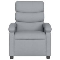 Sit back and drift away in this highly comfortable massage recliner chair! Manual reclining function: This reclining chair has a handle on the right side. You can manually adjust the footrest and the backrest to any position as per your comfort with a simple pull of the handle. This feature allows for a maximum tilt of 135 degrees. Additionally, the backrest can go quickly back to the original place with an easy pull of the handle.Vibration function: The featured 6 massage points let you experience a better-targeted massage. Additionally, the included hand control allows you to pick different massage programs. The massage function is powered by the USB connector, but the certified 5V USB power source is not included.Comfortable seat experience: The thickly padded seat, backrest, and wide armrests covered in fabric provide a cosy and warm sensation, making you feel embraced while seated. The fabric features a simple and clean look and is breathable and durable.Convenient side pocket: This armchair has a side pocket for your remote control or keeping your essential items within easy reach.Solid and stable frame: The frame made of wood and metal provides a strong structure and stability. This reclining armchair is comfortable and durable.