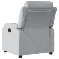 Sit back and drift away in this highly comfortable massage recliner chair! Manual reclining function: This reclining chair has a handle on the right side. You can manually adjust the footrest and the backrest to any position as per your comfort with a simple pull of the handle. This feature allows for a maximum tilt of 135 degrees. Additionally, the backrest can go quickly back to the original place with an easy pull of the handle.Vibration function: The featured 6 massage points let you experience a better-targeted massage. Additionally, the included hand control allows you to pick different massage programs. The massage function is powered by the USB connector, but the certified 5V USB power source is not included.Comfortable seat experience: The thickly padded seat, backrest, and wide armrests covered in fabric provide a cosy and warm sensation, making you feel embraced while seated. The fabric features a simple and clean look and is breathable and durable.Convenient side pocket: This armchair has a side pocket for your remote control or keeping your essential items within easy reach.Solid and stable frame: The frame made of wood and metal provides a strong structure and stability. This reclining armchair is comfortable and durable.