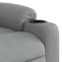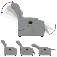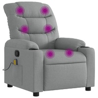 Sit back and drift away in this highly comfortable massage recliner chair! Manual reclining function: This reclining chair has a handle on the right side. You can manually adjust the footrest and the backrest to any position as per your comfort with a simple pull of the handle. This feature allows for a maximum tilt of 135 degrees. Additionally, the backrest can go quickly back to the original place with an easy pull of the handle.Vibration function: The featured 6 massage points let you experience a better-targeted massage. Additionally, the included hand control allows you to pick different massage programs. The massage function is powered by the USB connector, but the certified 5V USB power source is not included.Comfortable seat experience: The thickly padded seat, backrest, and wide armrests covered in fabric provide a cosy and warm sensation, making you feel embraced while seated. The fabric features a simple and clean look and is breathable and durable.Convenient cup holders and side pocket: This armchair has two convenient cup holders for your drinks and a side pocket for your remote control or keeping your essential items within easy reach.Solid and stable frame: The frame made of wood and metal provides a strong structure and stability. This reclining armchair is comfortable and durable.