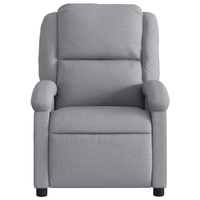 Sit back and drift away in this highly comfortable massage recliner chair! Manual reclining function: This reclining chair has a handle on the right side. You can manually adjust the footrest and the backrest to any position as per your comfort with a simple pull of the handle. This feature allows for a maximum tilt of 135 degrees. Additionally, the backrest can go quickly back to the original place with an easy pull of the handle.Vibration function: The featured 6 massage points let you experience a better-targeted massage. Additionally, the included hand control allows you to pick different massage programs. The massage function is powered by the USB connector, but the certified 5V USB power source is not included.Comfortable seat experience: The thickly padded seat, backrest, and wide armrests covered in fabric provide a cosy and warm sensation, making you feel embraced while seated. The fabric features a simple and clean look and is breathable and durable.Convenient side pocket: This armchair has a side pocket for your remote control or keeping your essential items within easy reach.Solid and stable frame: The frame made of wood and metal provides a strong structure and stability. This reclining armchair is comfortable and durable.
