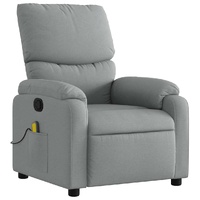 Sit back and drift away in this highly comfortable massage recliner chair! Manual reclining function: This reclining chair has a handle on the right side. You can manually adjust the footrest and the backrest to any position as per your comfort with a simple pull of the handle. This feature allows for a maximum tilt of 135 degrees. Additionally, the backrest can go quickly back to the original place with an easy pull of the handle.Vibration function: The featured 6 massage points let you experience a better-targeted massage. Additionally, the included hand control allows you to pick different massage programs. The massage function is powered by the USB connector, but the certified 5V USB power source is not included.Comfortable seat experience: The thickly padded seat, backrest, and wide armrests covered in fabric provide a cosy and warm sensation, making you feel embraced while seated. The fabric features a simple and clean look and is breathable and durable.Convenient side pocket: This armchair has a side pocket for your remote control or keeping your essential items within easy reach.Solid and stable frame: The frame made of wood and metal provides a strong structure and stability. This reclining armchair is comfortable and durable.