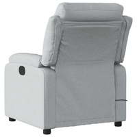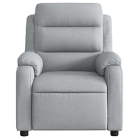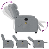 Sit back and drift away in this highly comfortable massage recliner chair! Manual reclining function: This reclining chair has a handle on the right side. You can manually adjust the footrest and the backrest to any position as per your comfort with a simple pull of the handle. This feature allows for a maximum tilt of 135 degrees. Additionally, the backrest can go quickly back to the original place with an easy pull of the handle.Vibration function: The featured 6 massage points let you experience a better-targeted massage. Additionally, the included hand control allows you to pick different massage programs. The massage function is powered by the USB connector, but the certified 5V USB power source is not included.Comfortable seat experience: The thickly padded seat, backrest, and wide armrests covered in fabric provide a cosy and warm sensation, making you feel embraced while seated. The fabric features a simple and clean look and is breathable and durable.Convenient side pocket: This armchair has a side pocket for your remote control or keeping your essential items within easy reach.Solid and stable frame: The frame made of wood and metal provides a strong structure and stability. This reclining armchair is comfortable and durable.