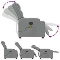 Sit back and drift away in this highly comfortable massage recliner chair! Manual reclining function: This reclining chair has a handle on the right side. You can manually adjust the footrest and the backrest to any position as per your comfort with a simple pull of the handle. This feature allows for a maximum tilt of 135 degrees. Additionally, the backrest can go quickly back to the original place with an easy pull of the handle.Vibration function: The featured 6 massage points let you experience a better-targeted massage. Additionally, the included hand control allows you to pick different massage programs. The massage function is powered by the USB connector, but the certified 5V USB power source is not included.Comfortable seat experience: The thickly padded seat, backrest, and wide armrests covered in fabric provide a cosy and warm sensation, making you feel embraced while seated. The fabric features a simple and clean look and is breathable and durable.Convenient cup holders and side pocket: This armchair has two convenient cup holders for your drinks and a side pocket for your remote control or keeping your essential items within easy reach.Solid and stable frame: The frame made of wood and metal provides a strong structure and stability. This reclining armchair is comfortable and durable.