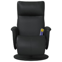 Sit back and drift away in this highly comfortable massage recliner chair! Vibration function: The featured 6 massage points let you experience a better-targeted massage. Additionally, the included hand control allows you to pick different massage programs. The massage function is powered by the USB connector that requires a certified 5V USB power source (not included).Adjustable backrest and footrest: This massage chair is specially designed with a reclining function so that you can adjust the backrest and footrest as per your comfort. The backrest can be tilted from 105 to 125 degrees.360-degree swivel: The massage recliner can be swivelled freely in 360 degrees, giving it extra flexibility.Comfortable seat experience: The thickly padded seat, backrest, and wide armrests covered in faux leather provide a cosy and warm sensation, making you feel embraced while seated. The faux leather is a highly durable material. It is resistant to stain, making it easy to clean with a damp cloth. The smooth surface also gives a luxurious look and the beauty of real leather.Solid and stable frame: The frame made of plywood and metal provides a strong structure and stability. This massage reclining chair is comfortable and durable. Good to know:To save space, some parts or cushions are packed inside the furniture—check zipped compartments or beneath the seat cover for any hidden components.