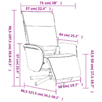 Sit back and drift away in this highly comfortable massage recliner chair! Vibration function: The featured 6 massage points let you experience a better-targeted massage. Additionally, the included hand control allows you to pick different massage programs. The massage function is powered by the USB connector that requires a certified 5V USB power source (not included).Adjustable backrest and footrest: This massage chair is specially designed with a reclining function so that you can adjust the backrest and footrest as per your comfort. The backrest can be tilted from 105 to 125 degrees.360-degree swivel: The massage recliner can be swivelled freely in 360 degrees, giving it extra flexibility.Comfortable seat experience: The thickly padded seat, backrest, and wide armrests covered in faux leather provide a cosy and warm sensation, making you feel embraced while seated. The faux leather is a highly durable material. It is resistant to stain, making it easy to clean with a damp cloth. The smooth surface also gives a luxurious look and the beauty of real leather.Solid and stable frame: The frame made of plywood and metal provides a strong structure and stability. This massage reclining chair is comfortable and durable. Good to know:To save space, some parts or cushions are packed inside the furniture—check zipped compartments or beneath the seat cover for any hidden components.