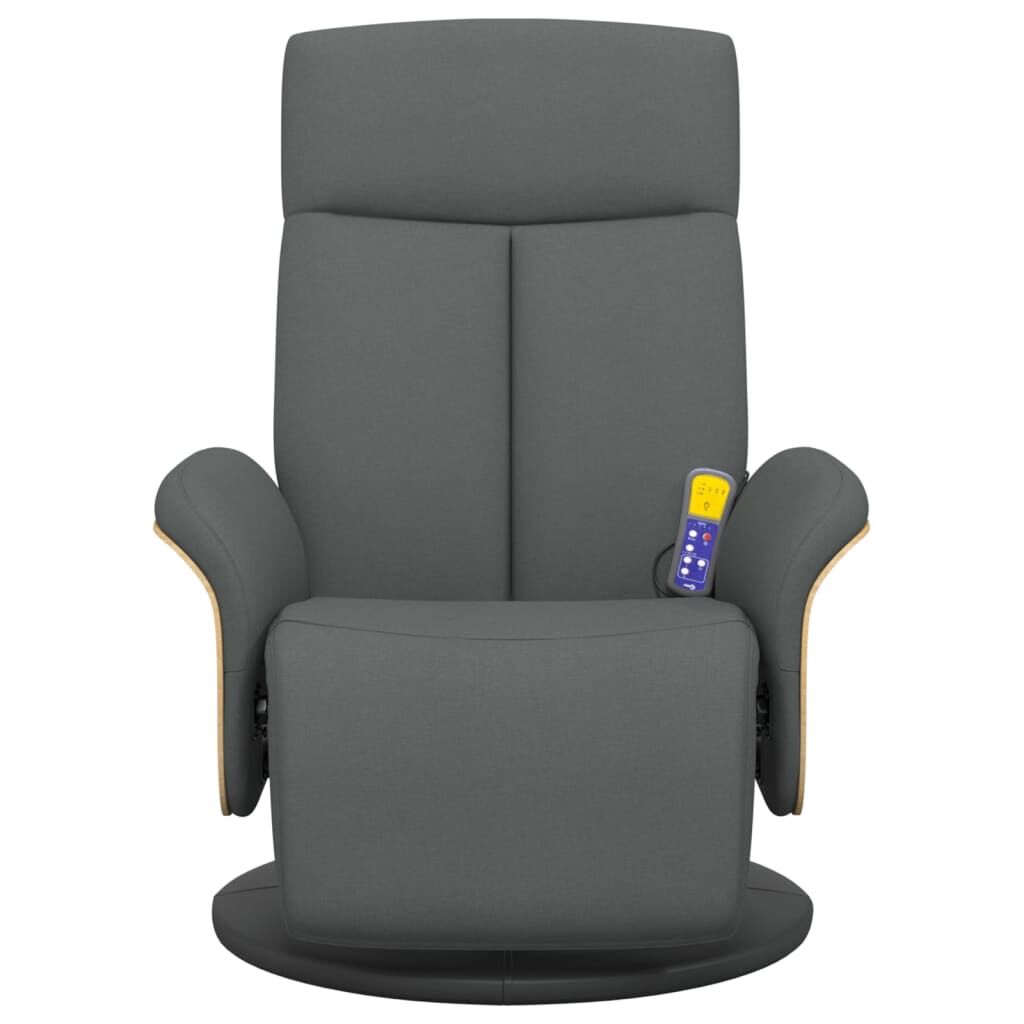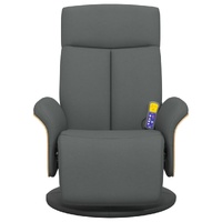 Sit back and drift away in this highly comfortable massage recliner chair! Vibration function: The featured 6 massage points let you experience a better-targeted massage. Additionally, the included hand control allows you to pick different massage programs. The massage function is powered by the USB connector that requires a certified 5V USB power source (not included).Adjustable backrest and footrest: This massage chair is specially designed with a reclining function so that you can adjust the backrest and footrest as per your comfort. The backrest can be tilted from 105 to 125 degrees.360-degree swivel: The massage recliner can be swivelled freely in 360 degrees, giving it extra flexibility.Comfortable seat experience: The thickly padded seat, backrest, and wide armrests covered in fabric provide a cosy and warm sensation, making you feel embraced while seated. The fabric features a simple and clean look and is breathable and durable.Solid and stable frame: The frame made of plywood and metal provides a strong structure and stability. This massage reclining chair is comfortable and durable.