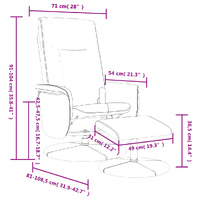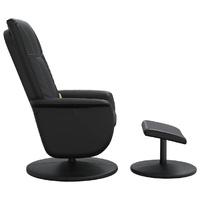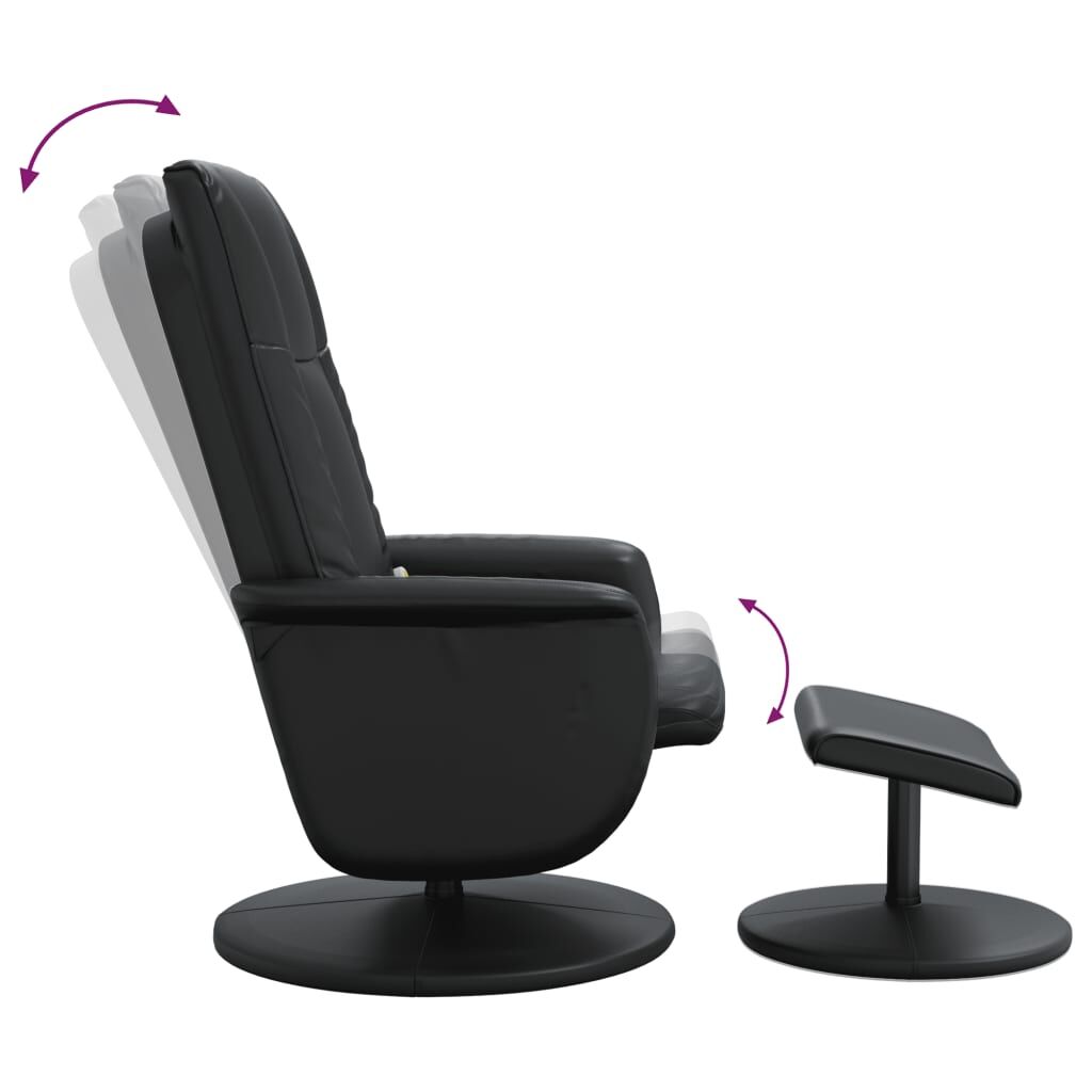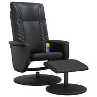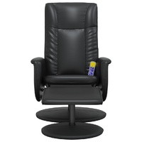 Sit back and drift away in this highly comfortable massage recliner chair! Manual reclining function: The massage chair is specially designed with a reclining function so that you can adjust the backrest as per your comfort.Vibration function: The featured 6 massage points let you experience a better-targeted massage. Additionally, the included hand control allows you to pick different massage programs. The massage function is powered by the USB connector that requires a certified 5V USB power source (not included).360-degree swivel: The reclining armchair can be swivelled freely in 360 degrees, giving it extra flexibility.Comfortable seat experience: The thickly padded seat, backrest, and armrests covered in faux leather provide a cosy sensation, making you feel embraced while seated. The extra stool is suitable for resting your feet when you lie on the recliner, making this chair a comfortable seat for any occasion.Solid and stable structure: The frame made of plywood and metal provides a strong structure. And the round base firmly grasps the ground, which offers optimal sturdiness and stability. Good to know:To save space, some parts or cushions are packed inside the furniture—check zipped compartments or beneath the seat cover for any hidden components.