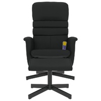 Sit back and drift away in this highly comfortable massage recliner chair! Vibration function: The featured 6 massage points let you experience a better-targeted massage. Additionally, the included hand control allows you to pick different massage programs. The massage function is powered by the USB connector that requires a certified 5V USB power source (not included).Manual reclining function: The massage chair is specially designed with a reclining function so that you can adjust the backrest as per your comfort. The backrest can be tilted from 105 to 125 degrees.360-degree swivel: The massage recliner can be swivelled freely in 360 degrees, giving it extra flexibility.Comfortable seat experience: The thickly padded seat, backrest, and wide armrests covered in faux leather provide a cosy and warm sensation, making you feel embraced while seated. The extra stool is suitable for resting your feet when you lie on the recliner, making this chair a comfortable seat for any occasion.Solid and stable frame: The frame made of plywood and metal provides a strong structure and stability. This reclining armchair is comfortable and durable. Good to know:To save space, some parts or cushions are packed inside the furniture—check zipped compartments or beneath the seat cover for any hidden components.