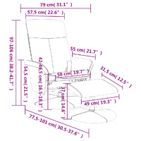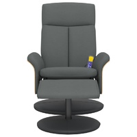 Sit back and drift away in this highly comfortable massage recliner chair! Vibration function: The featured 6 massage points let you experience a better-targeted massage. Additionally, the included hand control allows you to pick different massage programs. The massage function is powered by the USB connector that requires a certified 5V USB power source (not included).Manual reclining function: The massage chair is specially designed with a reclining function so that you can adjust the backrest as per your comfort. The backrest can be tilted from 105 to 125 degrees.360-degree swivel: The massage recliner can be swivelled freely in 360 degrees, giving it extra flexibility.Comfortable seat experience: The thickly padded seat, backrest, and wide armrests covered in fabric provide a cosy and warm sensation, making you feel embraced while seated. The extra stool is suitable for resting your feet when you lie on the recliner, making this chair a comfortable seat for any occasion.Solid and stable frame: The frame made of plywood and metal provides a strong structure. And the round base firmly grasps the ground, which offers optimal sturdiness and stability. Good to know:To save space, some parts or cushions are packed inside the furniture—check zipped compartments or beneath the seat cover for any hidden components.