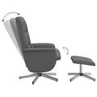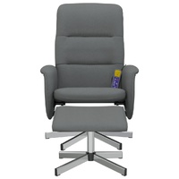 Sit back and drift away in this highly comfortable massage recliner chair! Vibration function: The featured 6 massage points let you experience a better-targeted massage. Additionally, the included hand control allows you to pick different massage programs. The massage function is powered by the USB connector that requires a certified 5V USB power source (not included).Manual reclining function: The massage chair is specially designed with a reclining function so that you can adjust the backrest as per your comfort. The backrest can be tilted from 105 to 125 degrees.360-degree swivel: The massage recliner can be swivelled freely in 360 degrees, giving it extra flexibility.Comfortable seat experience: The thickly padded seat, backrest, and wide armrests covered in fabric provide a cosy and warm sensation, making you feel embraced while seated. The extra stool is suitable for resting your feet when you lie on the recliner, making this chair a comfortable seat for any occasion.Solid and stable frame: The frame made of plywood and metal provides a strong structure and stability. This reclining armchair is comfortable and durable. Good to know:To save space, some parts or cushions are packed inside the furniture—check zipped compartments or beneath the seat cover for any hidden components.