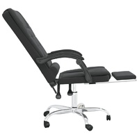 Featuring a minimalistic design, this trendy massage reclining office chair combines elegance and comfort, making it an eye-catcher in your working space. Durable faux leather: Premium faux leather is a highly durable material. It is resistant to stain, making it easy to clean with a damp cloth. The smooth surface also gives a luxurious look and the beauty of real leather.Massage function: The massage point on the back effectively relieves your fatigue and makes you more relaxed at work.Adjustable backrest and height: It is specially designed with a reclining function so that you can adjust the backrest and footrest as per your comfort. Use the lever to adjust the height of your seat to your liking.Convenient design: The 360 degree swivel design allows a wider range of motion. Additionally, it is convenient to move around with rolling castors.Sturdy and stable frame: The metal and plywood frames ensure sturdiness and stability. Good to know:Each product comes with an assembly manual in the box for easy assembly.The product has a USB connector, but the certified 5V USB power source is not included.