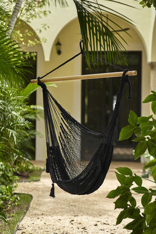 Our Mexican hammock chairs are just amazing with the bonus of a comfy back support, difficult to find elsewhere. Because they're extra large you can relax vertically or horizontally, anywhere you want, you choose.