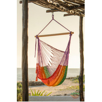 Mayan Legacy Extra Large Outdoor Cotton Mexican Hammock Chair in Rainbow Colour