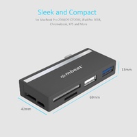 mbeat Essential USB-C hub features USB 3.0 port x 1, USB 2.0 port x 1, USB 3.0 SD reader x 1, USB 3.0 TF reader x1, USB 3.0 Push-Push TF reader x 1, DC Input (MicroUSB Type) x1.