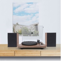 Enjoy your favourite 33?/45 vinyl or stream with Bluetooth via a smart device using the included set of powerful speakers or plug directly into your own sound system with the units built-in pre-amplifiers.
