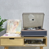 The turntable features an aesthetically pleasing and space-saving design, with an anti-resonance MDF plinth of simulated American walnut veneer finish. Specially engineered suspended sub-chassis mechanism limits low frequency acoustical feedback to the vinyl while enhancing sound performance.