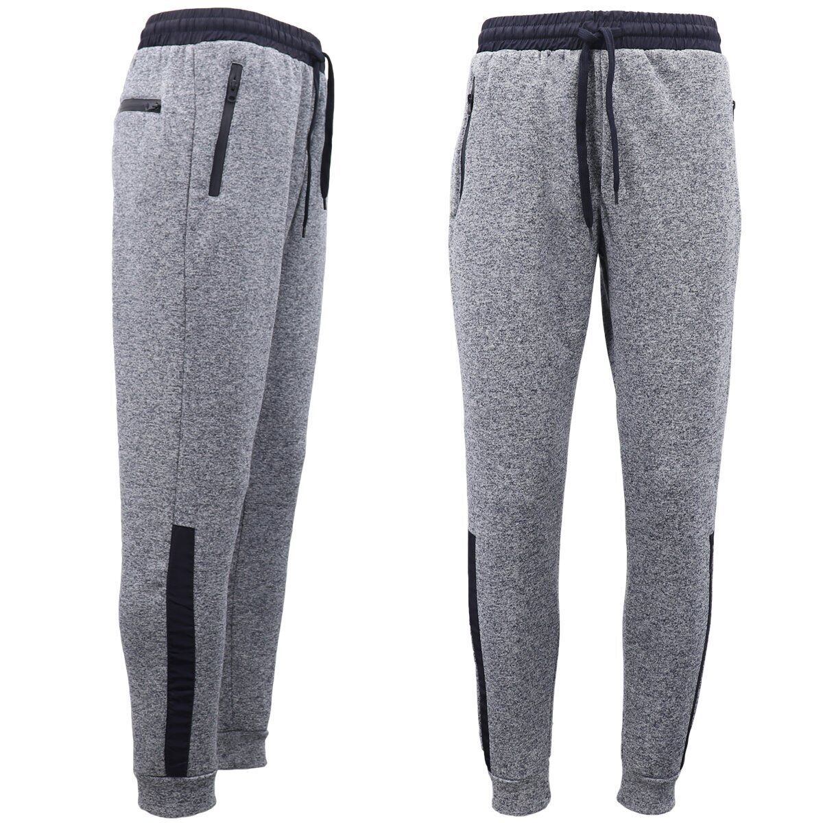 Mens Joggers Trousers Gym Sport Casual Sweat Track Pants Cuffed Hem w Zip Pocket, Navy