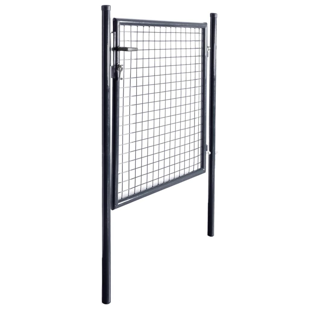 Featuring a high level of stability and durability, this fence gate can be used as a practical, modern entryway for your garden, patio and terrace. The garden gate is perfect in workmanship and manufactured from galvanised steel with a powder-coated finish, which is rust resistant and forms a sturdy construction. It has two side posts with bolt hinges for easy installation. Delivery also includes three keys.
