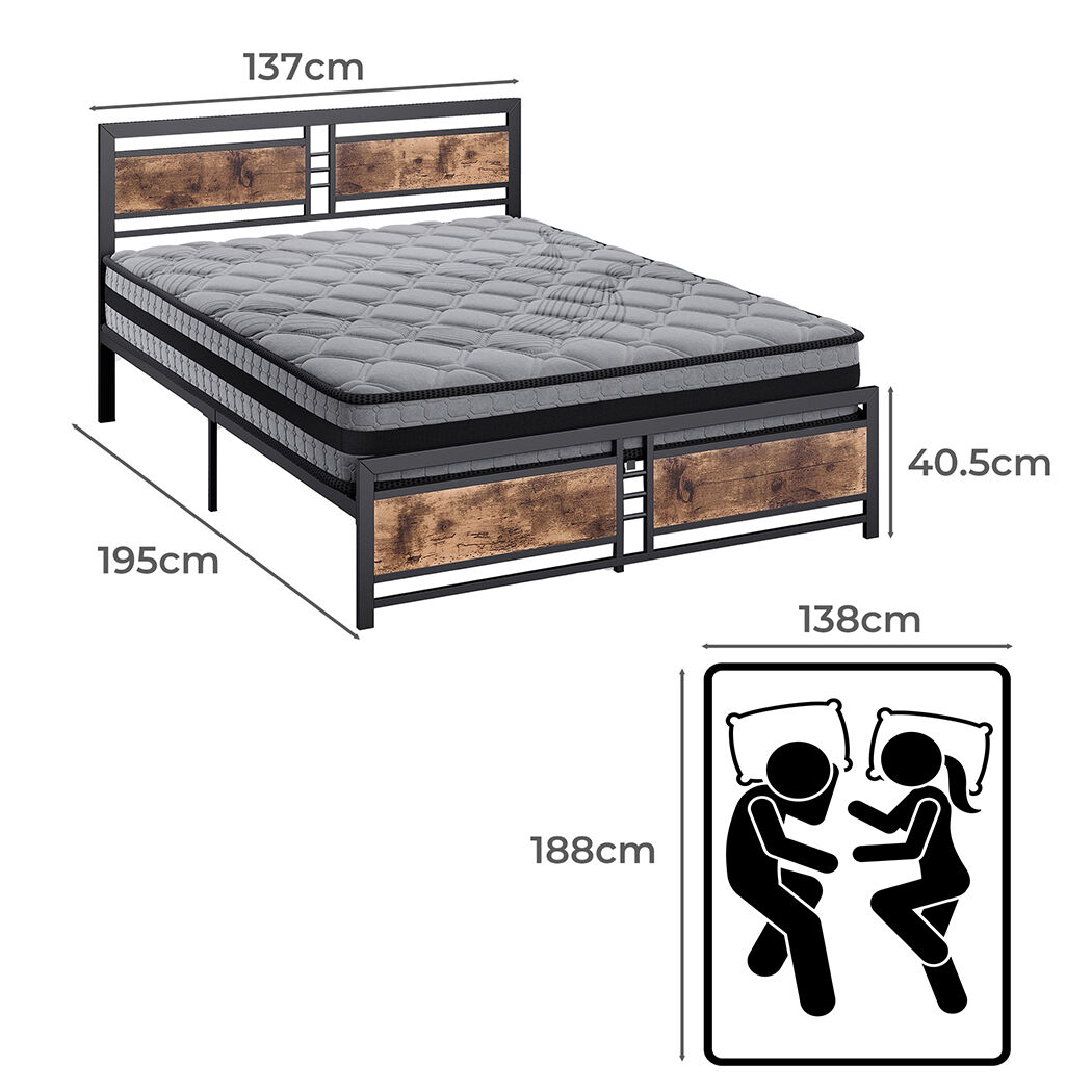 $404.19Upgrade your sleep experience with our stylish and modern industrial bed frame and luxurious 5-zone pocket spring mattress. Our bed frame is made of durable materials like steel and P2 grade MDF board, featuring exposed metal and wood that will enhance any bedroom's decor. The reinforced construction ensures that there will be no bending, providing sturdy and durable support for your mattress. Plus, it's noise-free and supportive, guaranteeing a peaceful night's sleep. The raised platform design of our bed frame creates valuable under-bed storage space, allowing you to store linens, pillows, and clothing out of sight.