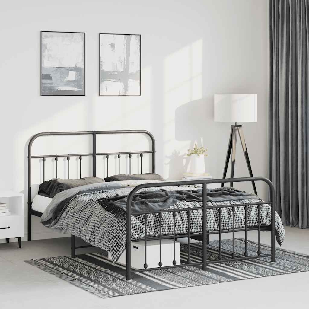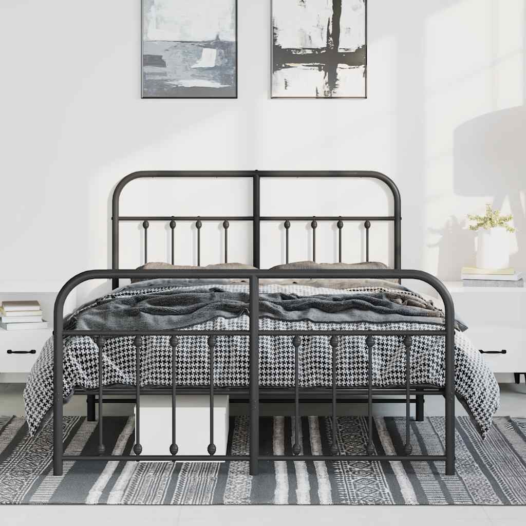 Metal Bed Frame without Mattress with Footboard Black 135x190 cm