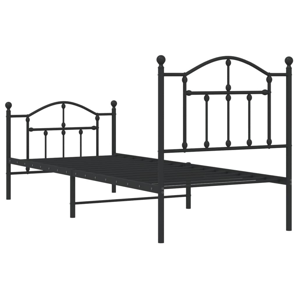 Metal Bed Frame without Mattress with Footboard Black 90x190 cm
