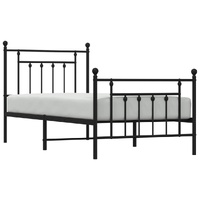 Metal Bed Frame without Mattress with Footboard Black 90x190 cm